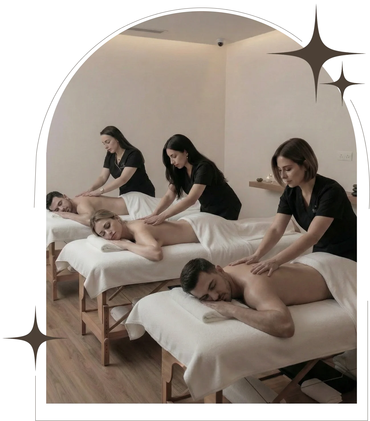 Restore Family Harmony with Our Three-Person Massage — a synchronized wellness experience where three expert therapists provide personalized treatments for total body balance, relaxation, and rejuvenation at home.